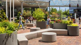 With a newly opened eatery as a ground-floor tenant, the plaza refresh provides a local destination during lunch and breaks, and a place to rest or hang out for passers-by or folks using Electric Avenue to charge their car.
