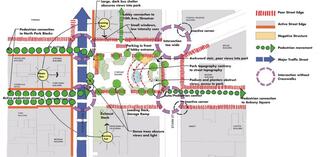 Herein lies the crux of the issue: the interaction between a city park and its immediate surroundings dictates how useful, sustainable, and safe it will ultimately be. The diagram below shows that O’Bryant’s integration in the daily flow of the city has been hindered by poor street edges on three of the four sides, awkward pedestrian access from all angles, and obscured visibility.