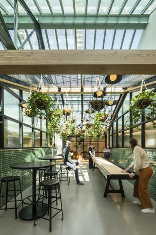 Our move to the Galleria is consistent with SERA’s core values as a firm that is committed to reducing climate change by minimizing climate impacts through adaptive reuse of the historic building and by choosing healthy materials and sustainably harvested wood. We continue to prioritize employee health by investing in exceptional air quality and thermal comfort, maximizing the flexibility of open office areas, and implementing technology strategies that can maximize the experience of both in-person and remote collaboration, including working and socializing in real time with our Oakland Staff.