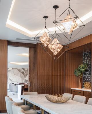 Moody and dramatic interiors unfold like the faceted core of a geode.