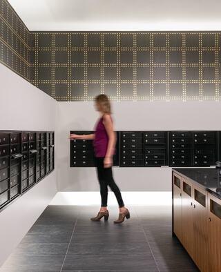Amenities prioritize human health and well-being and include a golf simulation room, sensory deprivation float pod and sauna, fitness room, and both a club room and reservable dining room that open onto the roof terraces.