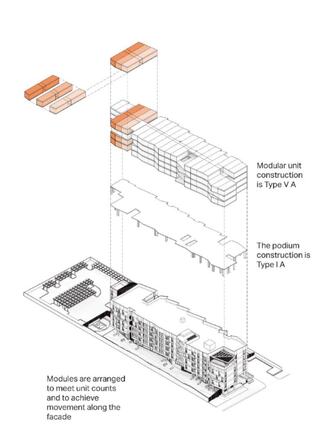 This approach efficiently achieves a more organic architectural expression. The facade achieves a sense of movement and variation within the typically rigid constraints of modular design. Our architectural team collaborated closely with the modular manufacturer and site-builder to create units that uphold the cost-savings strategies of off-site construction while imbuing the design with the qualities that are essential for beautiful, sustainable and equitable placemaking.