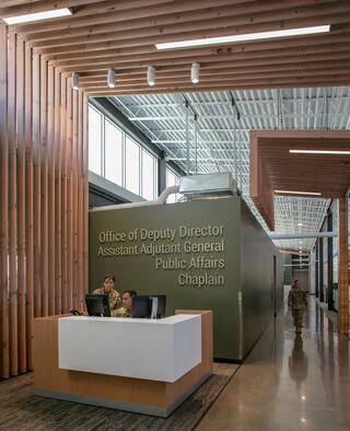 This new home for the Oregon Military Department's Joint Force Headquarters in Salem meets LEED Gold and Oregon SEED requirements while providing innovative workplace environments for both the Oregon Army National Guard and the Oregon Air National Guard.