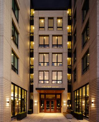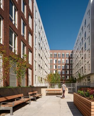 A true urban center of retail, indoor and outdoor community spaces, and studios, lofts, and one- and two-bedroom apartments creates an anchor for a new neighborhood.