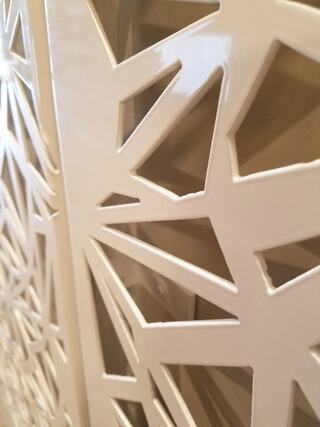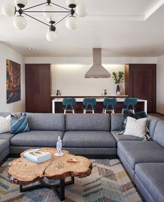 The interior finishes at Modera Belmont incorporate nature-inspired materials and patterns. Custom wood elements, screens with a biophilic pattern, and combinations of textures create a tactile sense of welcome.