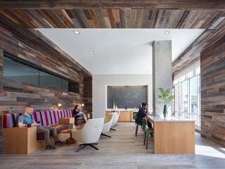 Modera Belmont's interiors feature design elements and art that emphasize handcrafts and bring a sense of humor—very Portland! The mood is warm and fun, and reflects the quirkiness this neighborhood embraces and celebrates.