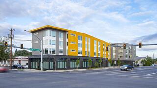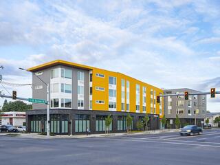 Creating a bold landmark at one of the city’s busiest intersections, Orchards provides community-focused housing for a diverse Southeast Portland population.