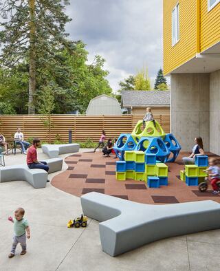 This project was awarded funding by Oregon Housing and Community Services and the Portland Housing Bureau for tackling the issues of displacement, affordability, dangerous pedestrian conditions, and revitalizing suburban neighborhoods. Metro contributed the land and funding to this transit-oriented development. The courtyard serves as the social hub and provides a unique space for residents to engage in a range of activities from large and small gatherings to tai chi classes or children’s play.