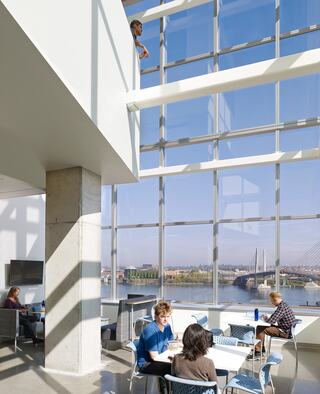 This allied health, academic, and research building is a collaboration between Oregon Health & Science University, Portland State University, and Oregon State University—and an icon as the first construction at OHSU's Schnitzer Campus on Portland's South Waterfront.