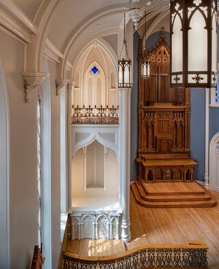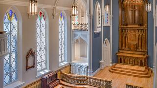 Today, visitors can admire the faux-painted columns and ornately-carved woodwork designed by pioneering architect, teacher and nun Mother Joseph Pariseau of the Sisters of Providence.