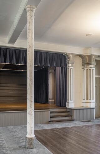 While maintaining the integrity of these storied spaces, renovations addressed contemporary hospitality and performance needs — from plaster repair, new flooring, and paint schemes to HVAC enhancements, new AV systems, and energy-efficient lighting.