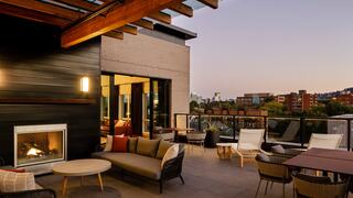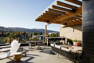 Common spaces include a turn-of-the century inspired fitness room, a water bar, and a club room that spills out onto a rooftop deck, featuring a fireplace, BBQ and sweeping views of Mt. Hood, downtown and the West Hills.