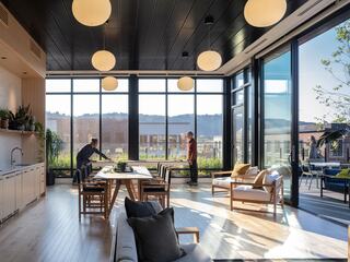 The many shared, open spaces bring light and vibrancy to the space. The design features an iconic greenhouse on top of one building, complete with a heated potting shed, vegetable garden and herb wall, and a sunroom atop the other adjacent building. As to the name, the word salt evokes therapeutic, health-giving qualities.