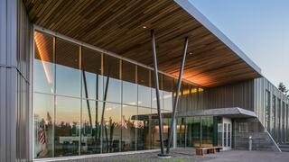 With open space, native vegetation, stormwater quality control, and generous use of regional materials, the Major General George White Headquarters accomplishes sustainability goals while providing a beautiful, functional headquarters for the Oregon Military Department.
