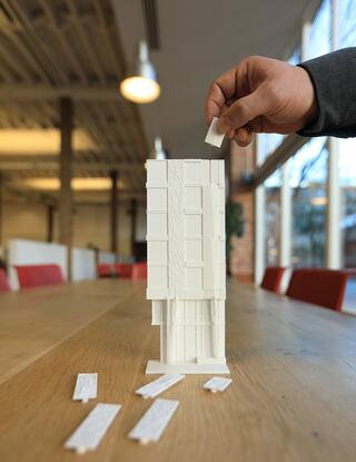 3D printing presents an exciting opportunity for Viz to branch out into the physical world. Using digital assets, the team created graphic options for the cladding. The design of the model allowed differing options to be visually compared side by side for discussion.